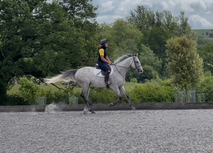 He will excel in any sphere and thoroughly enjoys his work. DJ does basic flatwork, he’s very balanced and moves well whilst carrying himself correctly. He will definitely stand out from the crowd! He has been to an arena hire which he took all in his stride and happily jumped a course of 80cm showjumps. Not phased by any fillers. He was forward going and does really enjoy his jumping so can get buzzy at times so requires a quiet patient rider but just needs educating that there’s no rush! In every other situation he is far more slow than go and takes plenty of leg. He is a bonny little character and would thrive with his own person. Snaffle mouthed & kind temperament. Has hacked out alone or in company around open fields and lanes where he wasn’t fazed by traffic or any surroundings. Lives in & out in company. Good to box, travel & shoe. No blemishes, no bumps, no vices. No novice or nervous riders! No loans. No payment plans. No timewasters or day trippers we are a busy yard. Serious enquiries only.